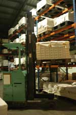 Racking, forklift operation inside another warehouse for paper that have already been cut according to client specifications.